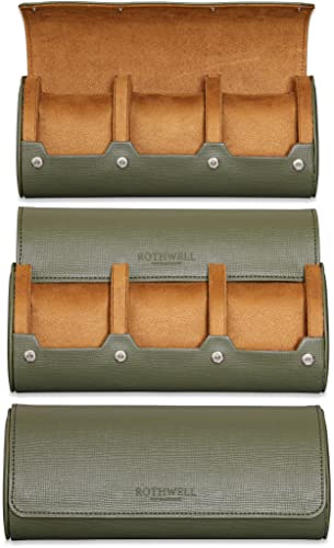 ROTHWELL (ロスウェル) 腕時計ロール トラベルケース 腕時計3本用 | タフなポータブル保護 50mmまでのすべての腕時計とスマートウォッチに対応 (グリーン/タン)の高価買取ITEM