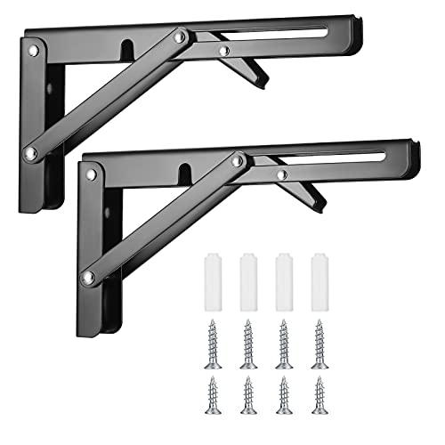 2本セットのL字型折りたたみ棚受け金具です。ステンレス製で耐久性が高く、ブラックのデザインがシンプル。ホームやオフィスでの使用に最適です。