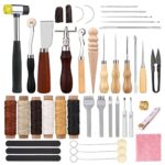 Denntyのレザークラフトキットは、41点の工具を含み、裁縫セットや革用針、ワックス糸つき。千枚通しや穴あけツールも揃い、革細工を楽しく手助けします。