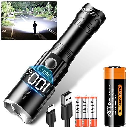 懐中電灯 USB充電式の軍用LEDライト。明るさ調整可能で耐衝撃・防水仕様。軽量・コンパクトで持ち運び便利。キャンプや非常時にも最適。