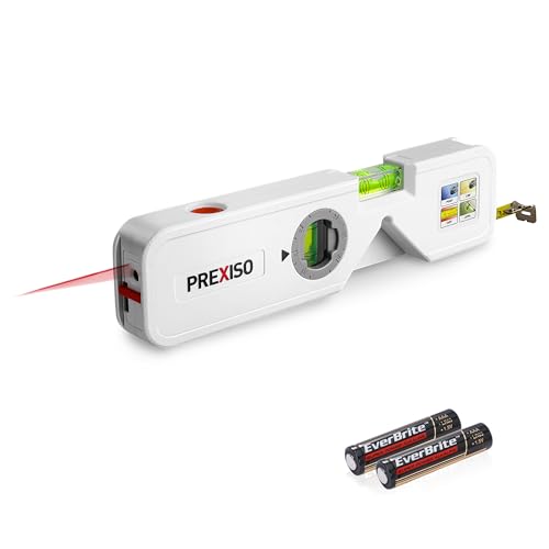 PREXISO 水平器は、レーザーレベル、角度計、ミニレベル、バブルレベルの4役をこなし、家庭やDIYに最適です。3m物差し付きで、棚取り付けや壁掛けに便利なホワイトカラーのモデルです。