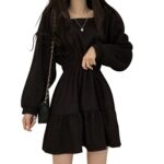 [DAYCLOSET] ミニワンピース 長袖 膝上 Aライン ティアード フレア パフスリーブ 中厚手 春秋 tops1678 (L, ブラック)の製品情報