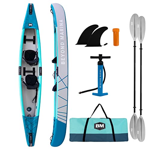 Beyond Marinaのインフレータブルシーカヤックは、初心者向けで1~2人乗り、安定性が高い設計。ドロップステッチ構造により、海、川、湖での釣りやクルージングに最適です。