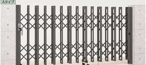 アルマックス アルミゲート EXG18シリーズは高さ1.9m、幅4.5mの片開きタイプで、傾斜地にも対応した特許取得済みのアコーディオンゲートです。木目調ホワイト仕上げで、仮設ゲートやガレージに最適です。