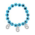 QqzsJewls 邪視ブレスレットは、エンジェルナンバーとビーズを使用したレディースアクセサリーです。プラスチックとアクリル素材を使用し、宝石は使用されていません。