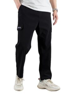 [ANONIE] カーゴパンツ メンズ 夏 接触冷感 作業着 ズボン アイスシルクパンツ ロングパンツ ストレッチパンツ 速乾 カジュアルパンツ テーパードパンツ イージーパンツ 冷感パンツ 夏服 涼しいズボン カーゴパンツ 大きいサイズ black XL