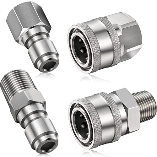 Shimeyao 2セットのNPT 1/4インチ高圧洗浄機カプラーです。クイックコネクトプラグ(オス・メス)で、外部・内部ねじタイプの高圧洗浄機アダプターやアクセサリーに対応しています。