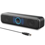 YOFANQI USBコンピュータスピーカーは、小型でデスクトップやノートPCに最適。ステレオ大音量、低音強化、ダイナミックRGBライト、デジタルボリュームノブ搭載。