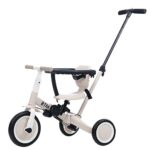 子供用三輪車4in1は、押し棒と安全バー付きで安心して使用でき、軽量で持ち運びも楽々。キックボードや乗用玩具としても楽しめる多機能な幼児用バイクです。マットグリーンカラー。