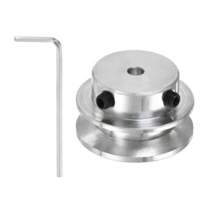 PATIKIL 4mm 固定穴 30mm OD シングルグルーブプーリー、モーターシャフトボール盤用六角レンチ付きアルミニウム合金メカニカルVベルトプーリー 5-6mm PUラウンドベルト、シルバー