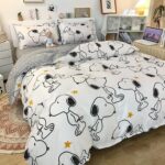 スヌーピー ダブル寝具4点セットは、かわいいスヌーピーデザインの布団カバー、掛け布団、枕カバー2枚のセットです。肌触りの良い素材で、洗濯機対応。インテリアにもぴったりなアイテムです。