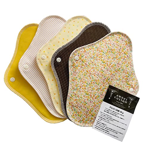 すぃーとこっとんの布ナプキン、ネル一体型昼用5枚セットです。日本製で、肌触りが良く、アルカリ洗剤付き。安心して使用できるアイテムです。ソレイユホワイトの爽やかなデザインが魅力。