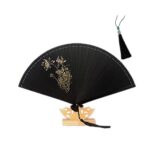 竹ひだ手作りのコンパクトな女性用ポータブルハンドヘルドファン。ブラックカラーで、ホームデコレーションやイベント・パーティー用品として最適なメモリアルギフトや記念品にもピッタリ。