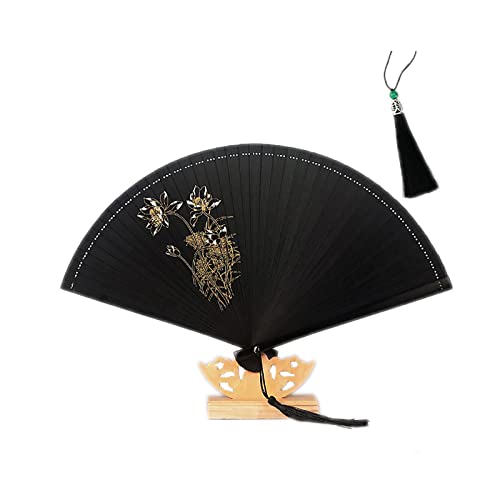 ホームアートデコレーション、クラフトオーナメント、メモリアルギフト、記念品ギフト、すべて竹ひだ手作りコンパクト女性ポータブルハンドヘルドファンホームデコレーションイベントパーティー用品ギフトハンドファン、ブラック (Color : Black)の製品情報