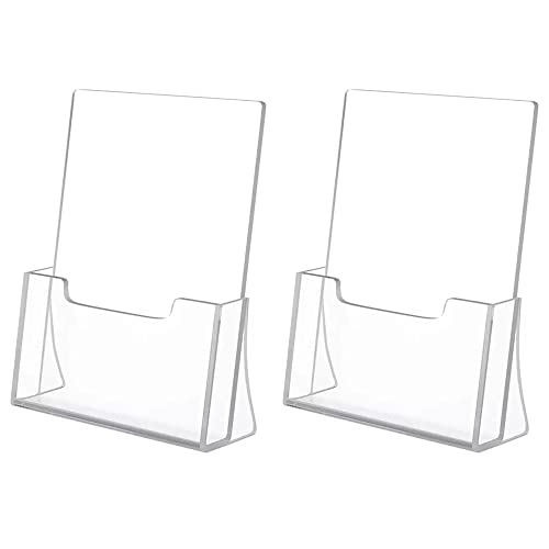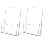 XMSSAAのアクリルカタログ・POP広告スタンド2個セット。透明なA4縦型デザインで、パンフレットやカタログをしっかりと支えます。卓上用に最適で、店舗販促やオフィスでの使用にぴったりです。