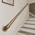 アンティーク真鍮製の階段手すりで、屋内外に対応。安全性を考慮した滑り止め機能付き。コンクリート壁に簡単に取り付け可能。サイズは30cmで、スタイリッシュなデザインが特徴です。