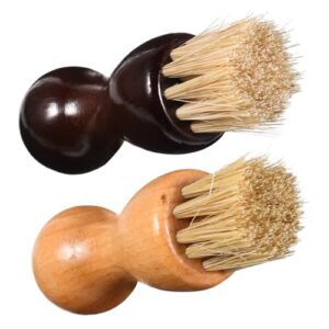 WESIEVYA 2個靴ブラシ 木製ハンドル 革靴 スニーカー ブーツ用 クリーニング メンテナンス ツール 携帯便利 多用途 革製品 バッグ ベルト掃除にも