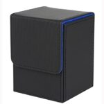 Venssu デッキケースは縦入れタイプのトレカケースで、マグネット式のPUレザー製。100枚のカード収納が可能で、スリーブ対応。遊戯王やポケモン、デュエマなどの各種カードゲームに適した黒色(内装青)デザインです。