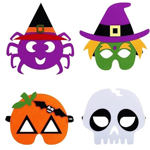 ハロウィンマスク4本セット。かわいいアイマスクや仮面で、コスプレやパーティーに最適。男女共用のデザインで、仮装や学園祭、節分の豆まきにも対応。撮影やイベントにもぴったりなアイテムです。