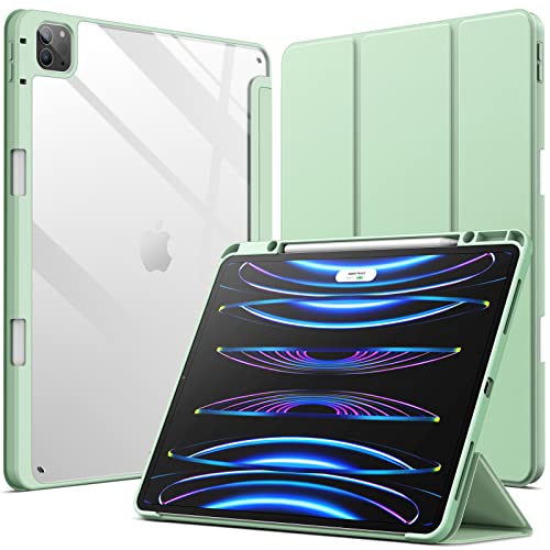 JETech iPad Pro 12.9インチケースは、2022/2021/2020/2018モデル対応で、薄型の透明バックカバー。Pencil収納可能、スタンド機能、衝撃吸収、オートウェイク/スリープ機能付き(抹茶グリーン)。