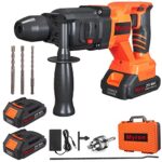 コードレスの21Vブラシレス1インチSDSプラスハンマードリルキット。バッテリー2個、充電器、ドリルビット3個付き。コンクリート、木材、石、金属に対応。