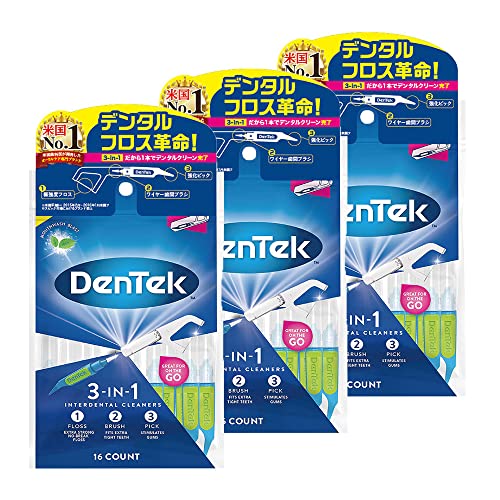 デンテックの歯間ブラシは1本で3役を果たす多機能フロスピックです。16本入×3パックで、虫歯予防や歯垢除去に最適。全米No.1ブランドのデンタルケア商品です。