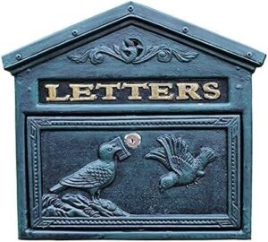 JDXQBLD ヴィンテージ鋳鉄製壁掛けメールボックス – 手紙や新聞用のロック可能な吊り下げ式郵便受け-