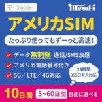 T-MobileのアメリカSIMカードは、10日間無制限で高速データ通信(4G-LTE)、通話、SMSが利用可能。ハワイを含むアメリカ全域で使える純正回線のプリペイドSIMです。