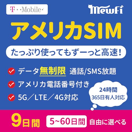 【T-Mobile】アメリカ simカード9日間無制限使い放題 純正T-Mobile回線 4G-LTE 高速データ通信/通話/SMS【アメリカ ハワイ 無制限】America USA SIM プリペイド SIMカード アメリカ 【mewfi】の製品情報