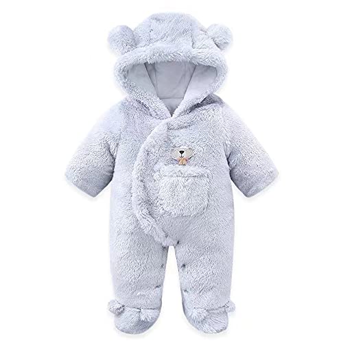 このロンパースは新生児用の長袖前開きカバーオールで、秋冬にぴったり。ボタン式で着脱簡単、保温性があり、柔らかい綿製。男の子・女の子兼用で、暖かくかわいいデザイン。サイズは6-9M、色はライトグレー。
