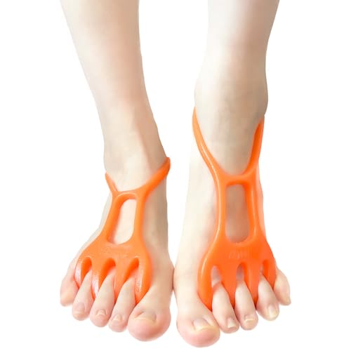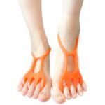 足指トレーニングチューブリングは、足の指を広げ、トレーニングやストレッチに最適です。お風呂でも使え、取扱説明書付きのオレンジ色の製品。