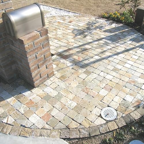 板ピン (イエロー) 9cm×9cm×2-3cm 50個/箱 天然石 敷石 ピンコロ 半丁 ガーデニング 庭 花壇 レンガ ブロック 石材 アプローチ DIY 新築 リフォーム 猫のおしっこ除け 防草効果 滑り止め ガーデニング 高価買取中