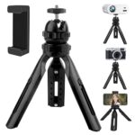 YOWHICK三脚は1/4インチM6規格で5段伸縮が可能。耐久性に優れ、卓上やミニ三脚として使用できます。自由雲台で360度回転し、軽量で持ち運びに便利。Sony、Canon、iPhone、SHARPなどの様々なカメラやスマホに対応しています。