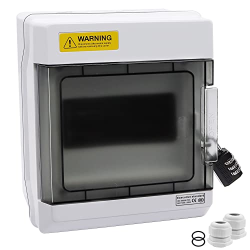 smseace 6ウェイサーキットブレーカーボックス。IP66防水、DINレールとバスバー付き。PCプラスチック製クリアカバーで充電ポストや屋内壁サーキットブレーカーに対応。