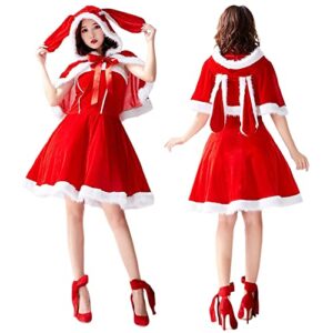 [Formemory] サンタワンピース ウサギ耳付き 仮装 ウサギ コスプレ クリスマス コスプレ レディース セクシー サンタクロース 仮装 サンタ 衣装 クリスマス 仮装 サンタクロース コスプレ 女性 レディース セクシー 可愛い ひざ丈 ケープ ファー 暖かい パーティー サンタ衣装 文化祭 大人用 (XL)