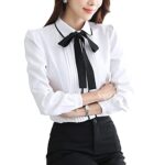 ボランヴェルのリボンタイ付きブラウスは、シンプルでおしゃれなデザインです。長袖で前開き、オフィスやビジネスシーンに最適。無地のホワイトカラーで、通勤やフォーマルな場にも適しています。サイズL。