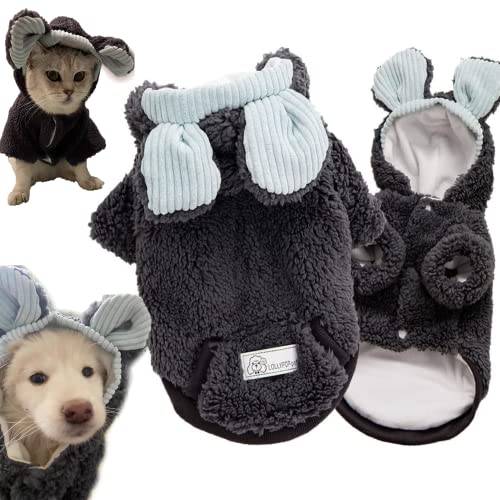 犬服 秋冬用のかわいいクマデザインパーカー。厚手でふわふわのボア素材、防寒対策に最適。小型犬・中型犬向け。着脱簡単で、お散歩やお出かけにもぴったり。