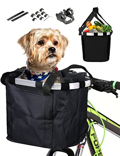 / OVTSPO 自転車 カゴ 前 カバー 防水 ワンタッチで装着 外し 折り畳み自転車 クロスバイク かご アルミフレーム バッグになる自転車 耐荷重5KG ペット、ショッピング、通勤、キャンプ、アウトドアなど、多目的に使える自転車用ハンドルバスケット(ブラック)