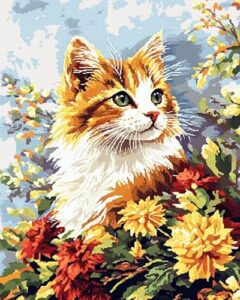 かわいい猫の動物 数字による新しいペイント 大人向け 子供 数字に絵を,花,キャンバスに描く フィギュア ナンバーペインティング ホームデコレーション,40x50cm 带框