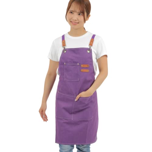 [X-STiTCH] 作業用エプロン メンズ ワークエプロン シンプル 複数ポケット付き 万能 アウトドア DIY キャンプ 男女兼 (パープル) 高価買取中