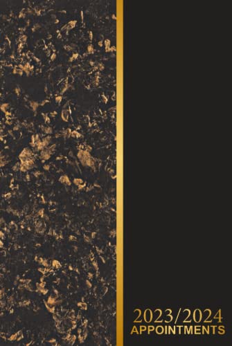 2023-2024 アポイントメントブック、ゴールド2版、380+ページ。サロンや美容関連職向け。デイリープランナー、午前8時〜午後9時の時間帯をカバー。モダンなデザイン!