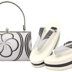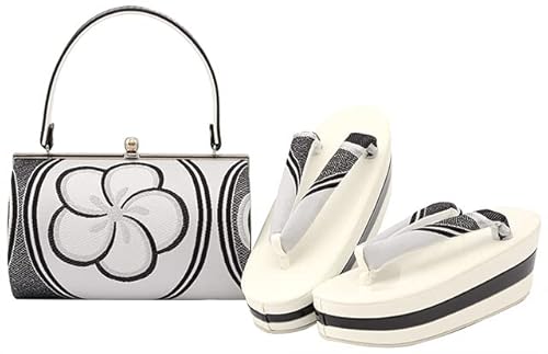 ソウビエン振袖用草履バッグセットは厚底で盛装感あり、古典的なデザインの三枚芯。帯生地を使用したレディース向けで、捻り梅×ホワイトのオシャレな色合い。フリーサイズで成人式にぴったり。