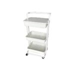 キッチンワゴンは幅42×奥行34×高さ87cm、耐荷重60kgの3段仕様。キャスター付きで移動が簡単。キッチンやオフィス、洗濯室など多用途に使えるスリムデザイン。