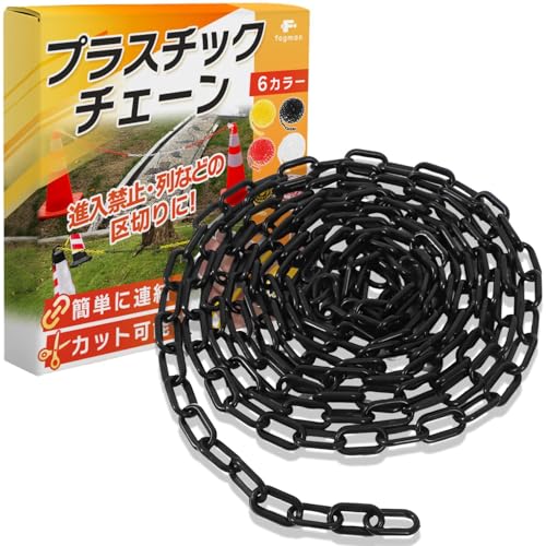 fogman チェーンは、軽量で耐久性に優れたプラスチック製の鎖です。駐車場や進入禁止エリアのパーテーションとして最適で、長さは5m、色はブラックです。
