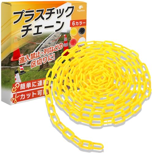 fogmanの軽量プラスチックチェーンは、駐車場や進入禁止エリアのパーテーションに最適。長さ5m、明るいイエロー色で視認性抜群!