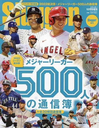 『2022メジャーリーガー500人の通信簿』は、2022年12月号のSLUGGER増刊です。メジャーリーグの選手情報や戦績を網羅し、詳細な分析とともに提供。ファン必携のデータ集。