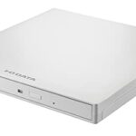 アイ・オー・データのDVRP-UB8Wは、USB A対応のポータブルDVDドライブ。電源補助ケーブルと保存ソフト付きで、持ち運びに便利な白色のデザインです。