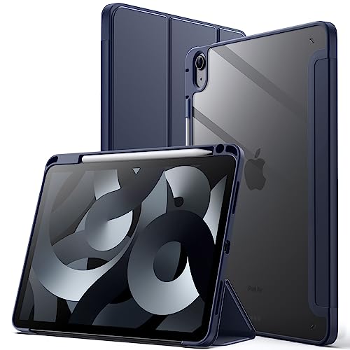 JETech iPad Air 11インチ M3/M2 (2025/2024)及びiPad Air 5/4ケース。透明バックカバー、薄型、スタンド機能、衝撃吸収、オートウェイク/スリープ機能、Pencil収納可能(ライラック色)。