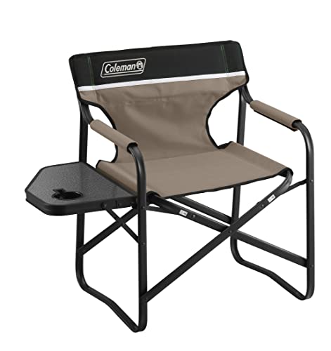 コールマンのサイドテーブル付デッキチェアは、折り畳み式で持ち運びが便利。キャンプや釣りに最適で、ガーデンやリビングでも使えます。サイドテーブル付きで、飲み物や小物を置くのに便利です。