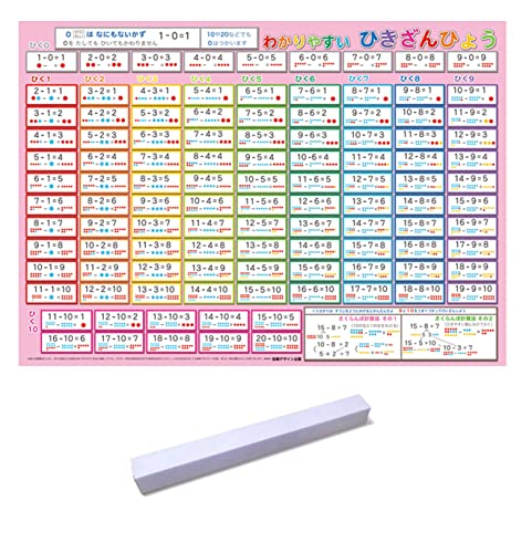 「わかりやすいひき算表」はA3サイズのポスターで、お風呂で楽しく学べる商品です。幼児から小学生まで使え、受験対策や知育に最適です。簡潔で見やすいデザインが特徴です。